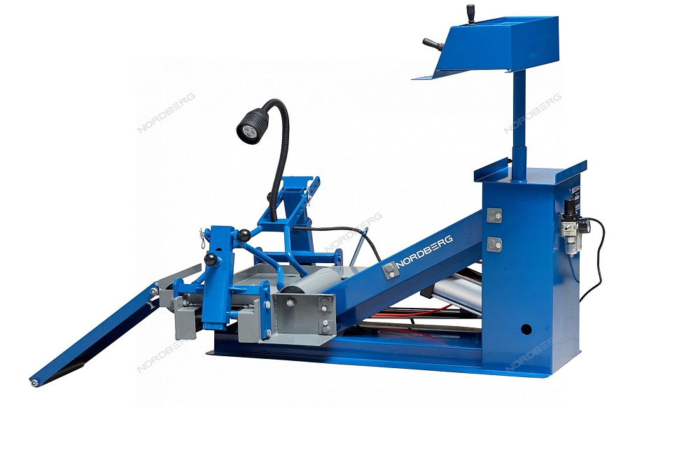 Пневматический борторасширитель NORDBERG D5 для шин грузовых автомобилей с установочным столом и подъемником разработан для фиксации шины, расширения ее бортов и подъема во время ремонта.