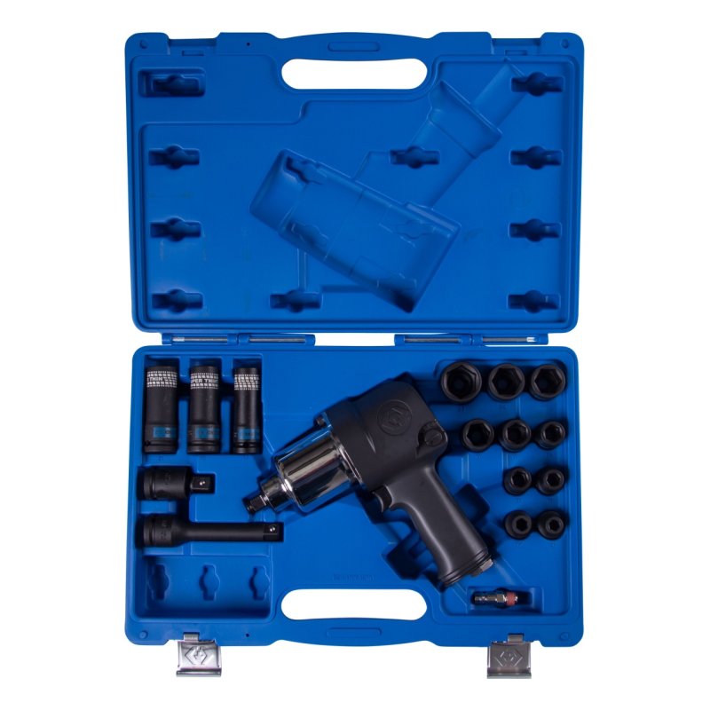 Гайковерт пневматический ударный 1/2", 881 Нм, с комплектом головок, 17 предметов KING TONY 44106AMP01