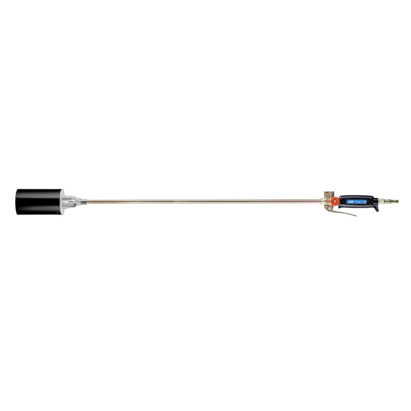 Горелка ручная газовоздушная пропановая с одним соплом диаметром 70 мм для нагрева изделий и заготовок из черных и цветных металлов. Горелка с рычагом подачи горючего газа. Длина горелки 1000 мм.