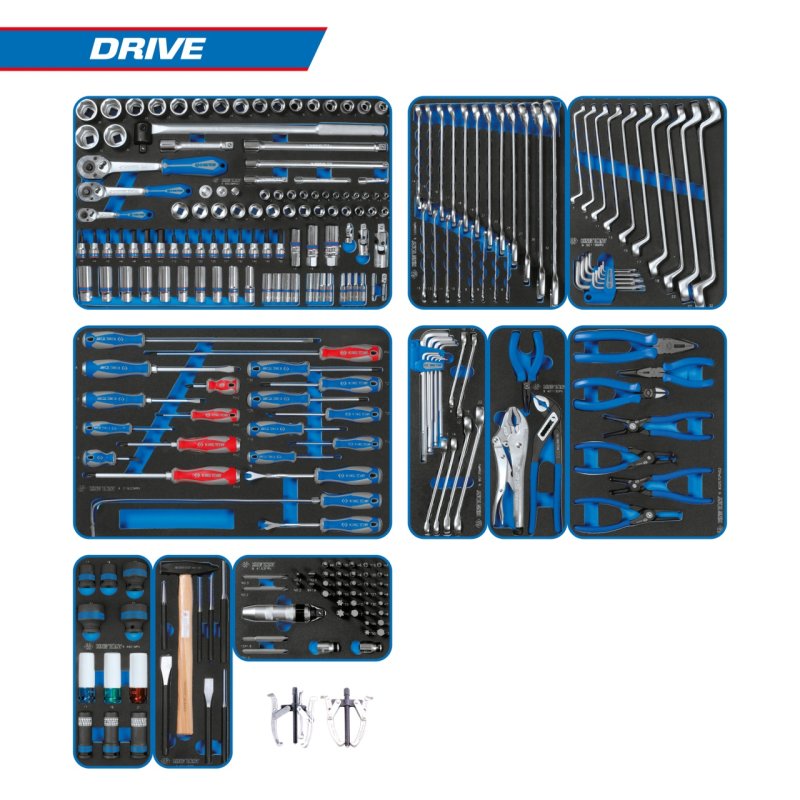 934-251MRVD KING TONY Набор инструментов "DRIVE" для тележки, 10 ложементов, 251 предмет