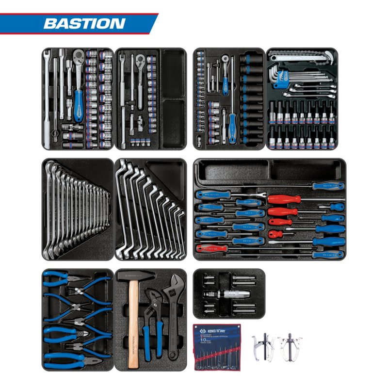 946-100MRD-MT KING TONY Набор инструментов "BASTION" для тележки, 10 ложементов, 204 предмета купить в Саратове цена ✅ - Все для СТО