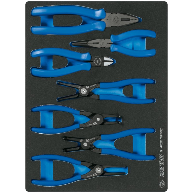 KING TONY Набор съемников стопорных колец, пассатижей и бокорезов, ложемент, 7 предметов KING TONY 9-40207GPV02