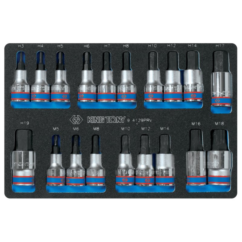 KING TONY Набор торцевых насадок Hex и Spline, ложемент, 19 предметов KING TONY 9-4129PRV