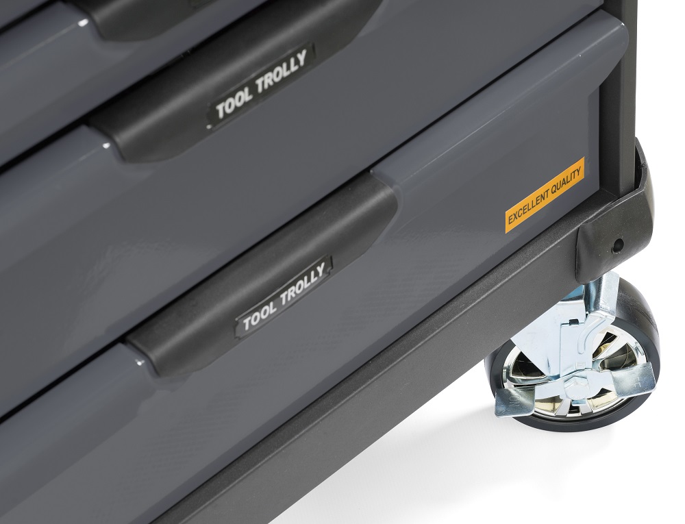 KraftWell KRW-T7D— это воплощение современных технологий организации  рабочего пространства. Профессиональная тележка с семью вместительными  ящиками создана специально для тех, кто ценит порядок и эффективность в  работе.