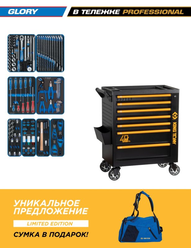 Набор инструментов 152 предмета, "GLORY", в черной тележке KING TONY 9G38-152MRV40 купить в Саратове цена ✅ - Все для СТО