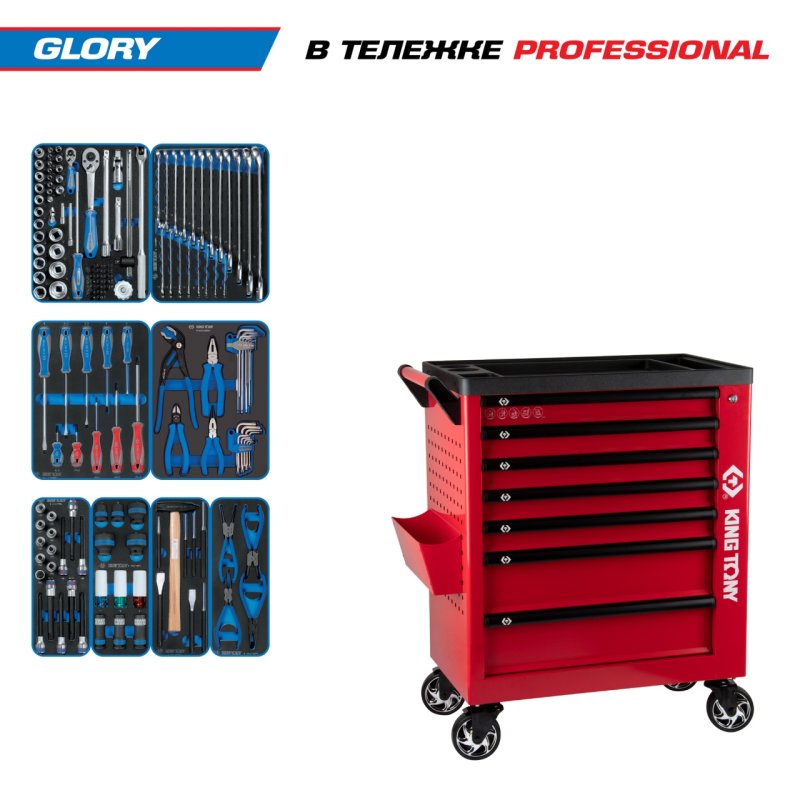 Набор инструментов 152 предмета, "GLORY", в красной тележке KING TONY 9G38-152MRVR купить в Саратове цена ✅ - Все для СТО