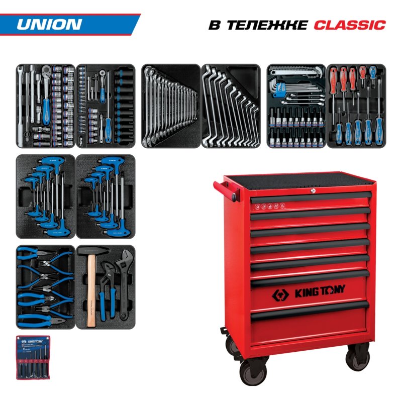 Набор инструментов 173 предмета, "UNION", в красной тележке KING TONY 934-000MR купить в Саратове цена ✅ - Все для СТО