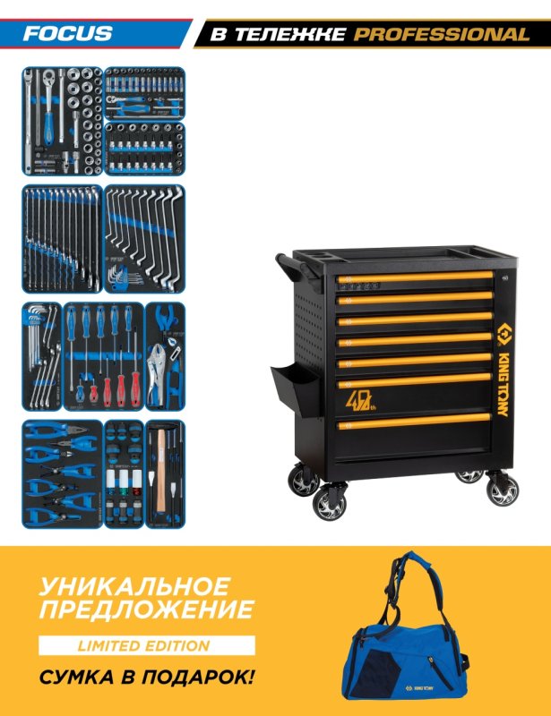 Набор инструментов 188 предметов, "FOCUS", в черной тележке KING TONY 9G38-188MRV40 купить в Саратове цена ✅ - Все для СТО