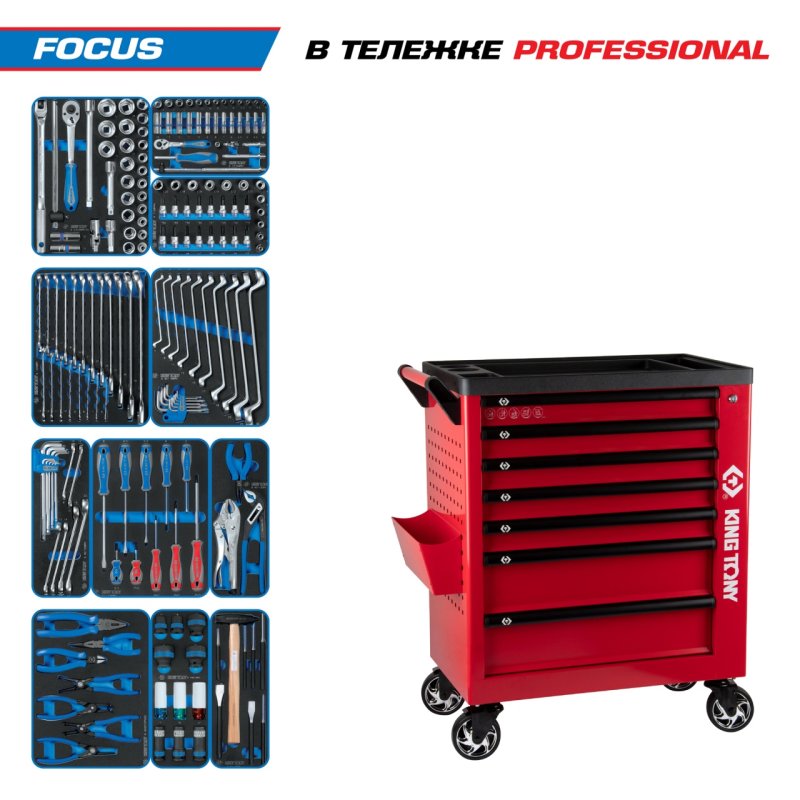Набор инструментов 188 предметов, "FOCUS", в красной тележке KING TONY 9G38-188MRVR купить в Саратове цена ✅ - Все для СТО