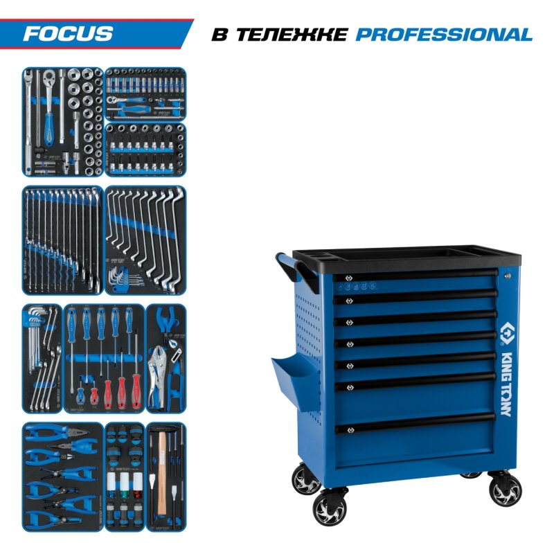 Набор инструментов 188 предметов, "FOCUS", в синей тележке KING TONY 9G38-188MRVB купить в Саратове цена ✅ - Все для СТО