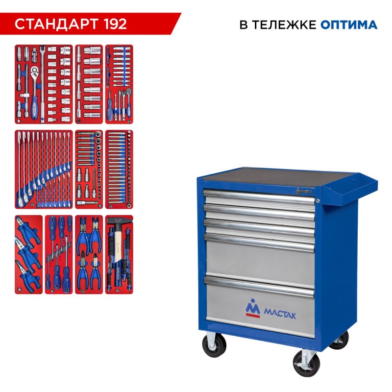 Набор инструментов 192 предмета, "СТАНДАРТ 192", в синей тележке МАСТАК 52-05192B