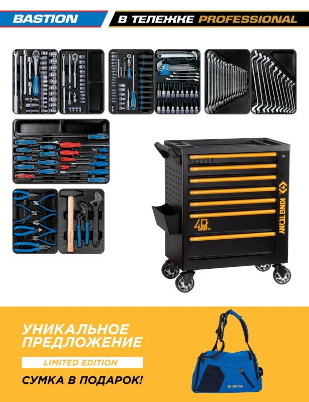 Набор инструментов 204 предмета, "BASTION", в черной тележке KING TONY 9G38-100MR40 купить в Саратове цена ✅ - Все для СТО