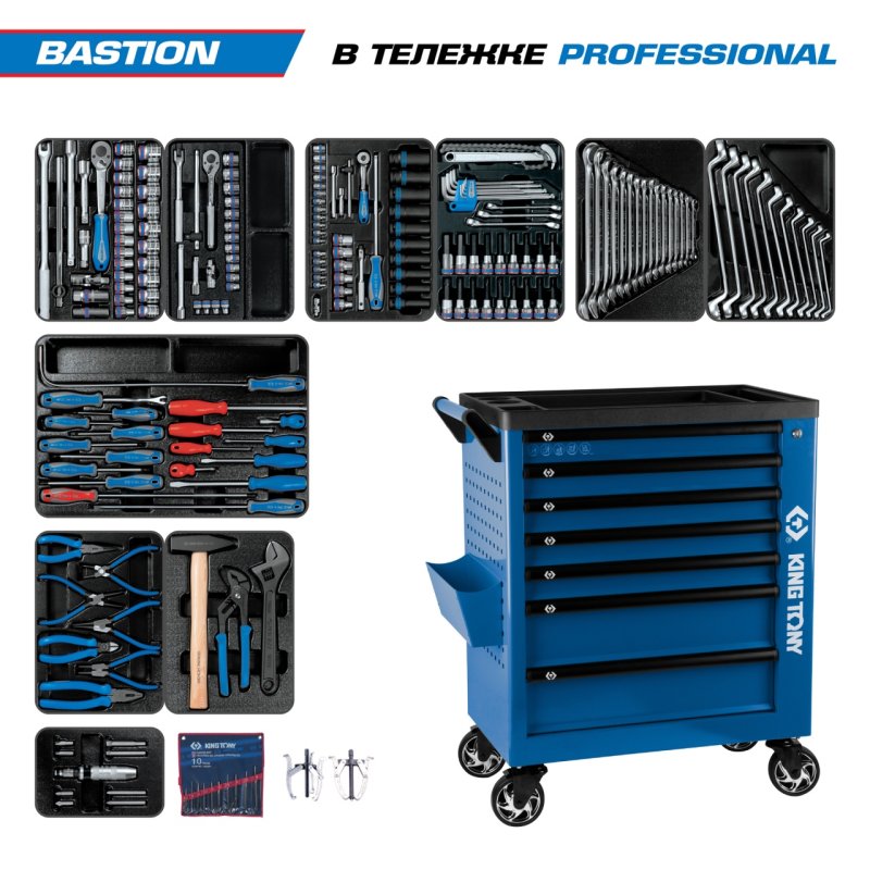 Набор инструментов 204 предмета, "BASTION", в синей тележке KING TONY 9G38-100MRB купить в Саратове цена ✅ - Все для СТО
