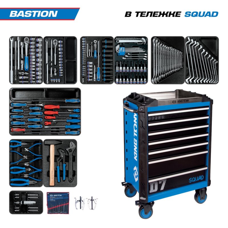Набор инструментов 204 предмета, "BASTION", в синей тележке KING TONY 9SQ31-100MR купить в Саратове цена ✅ - Все для СТО