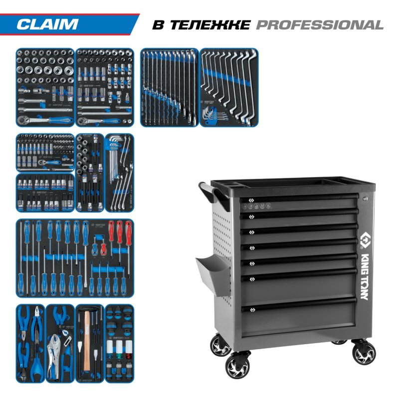 Набор инструментов 286 предметов, "CLAIM", в серой тележке KING TONY 9G38-286MRVG купить в Саратове цена ✅ - Все для СТО