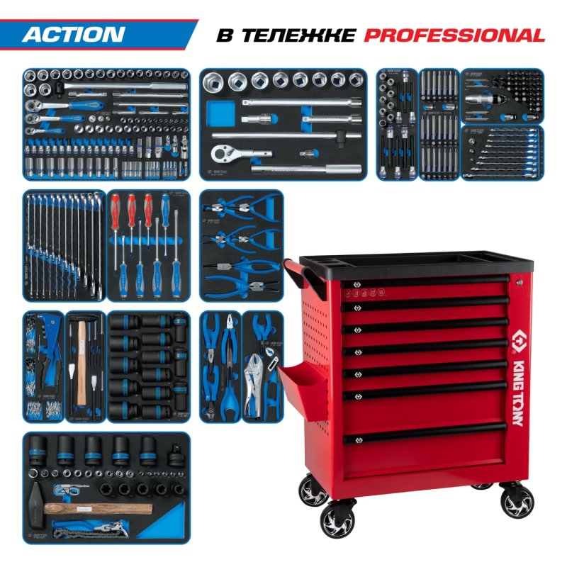 Набор инструментов 327 предметов, "ACTION", в красной тележке KING TONY 9G38-327MRVR купить в Саратове цена ✅ - Все для СТО