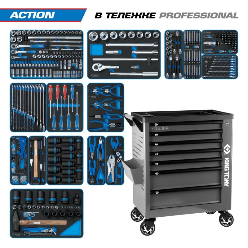Набор инструментов 327 предметов, "ACTION", в серой тележке KING TONY 9G38-327MRVG купить в Саратове цена ✅ - Все для СТО