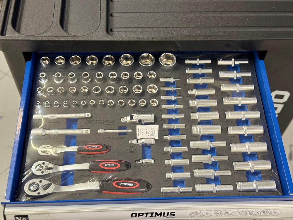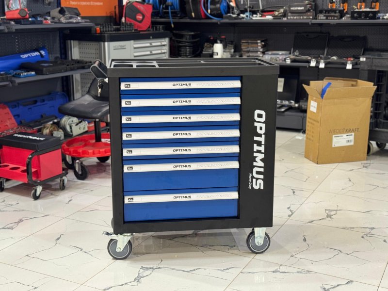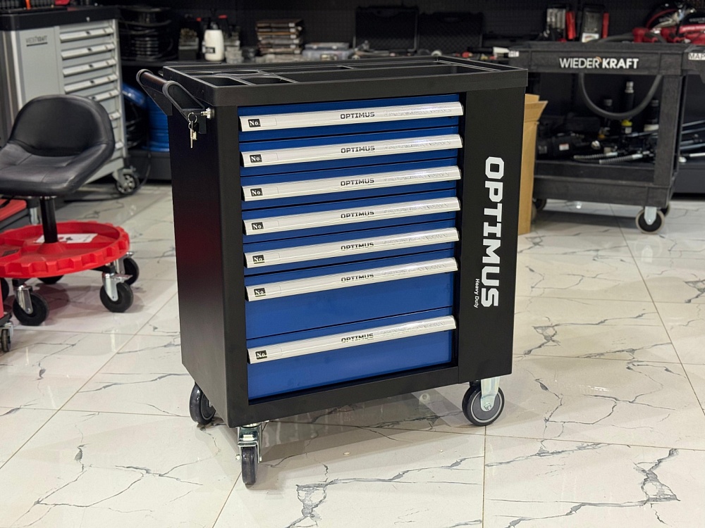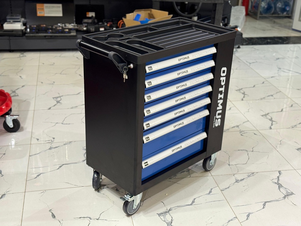 OPT-917P Тележка инструментальная 7 полок с набором инструментов, пластиковая столешница (289 предметов) Optimus купить в Саратове цена ✅ - Все для СТО