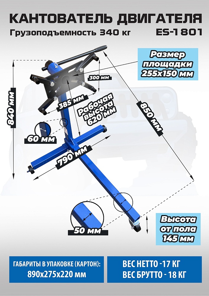 ES-1801 Кантователь двигателя 340 кг купить в Саратове цена ✅ - Все для СТО