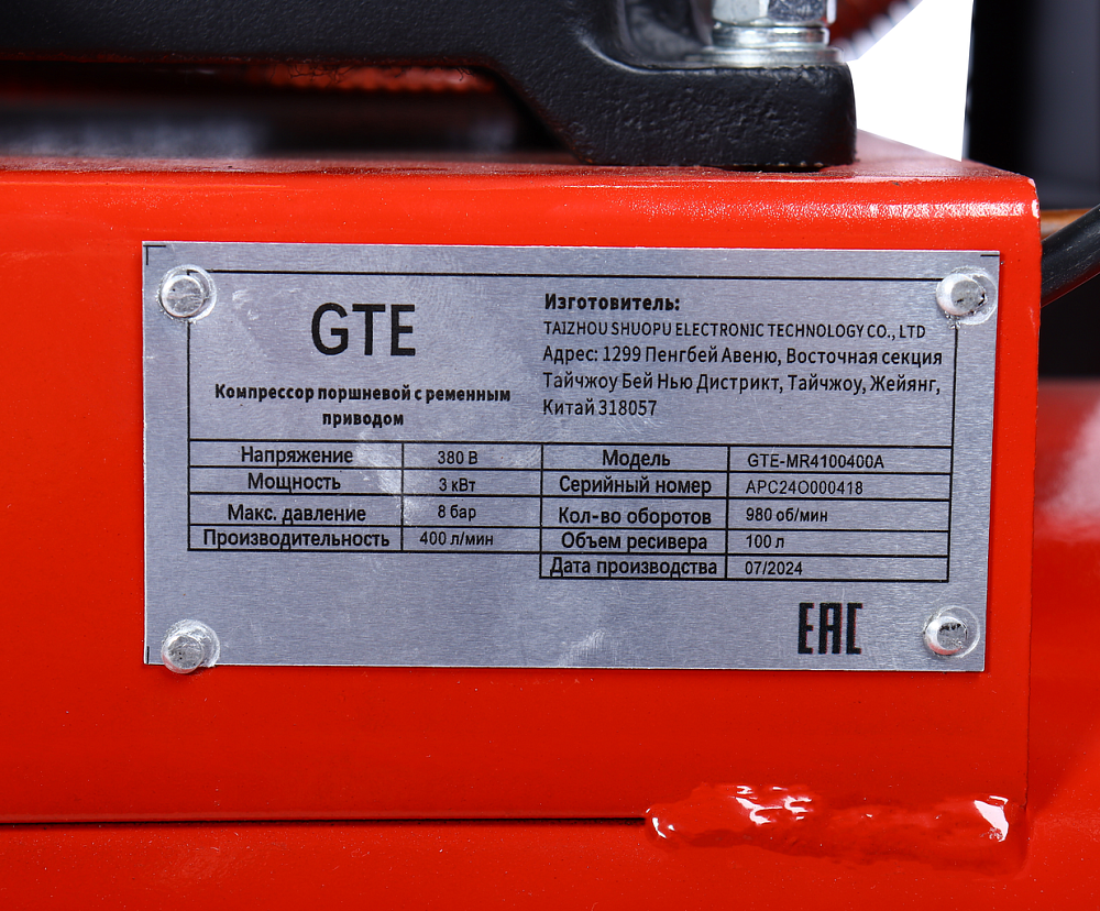 GTE-MR4100400A Компрессор поршневой с ременным приводом 380В купить в Саратове цена ✅ - Все для СТО