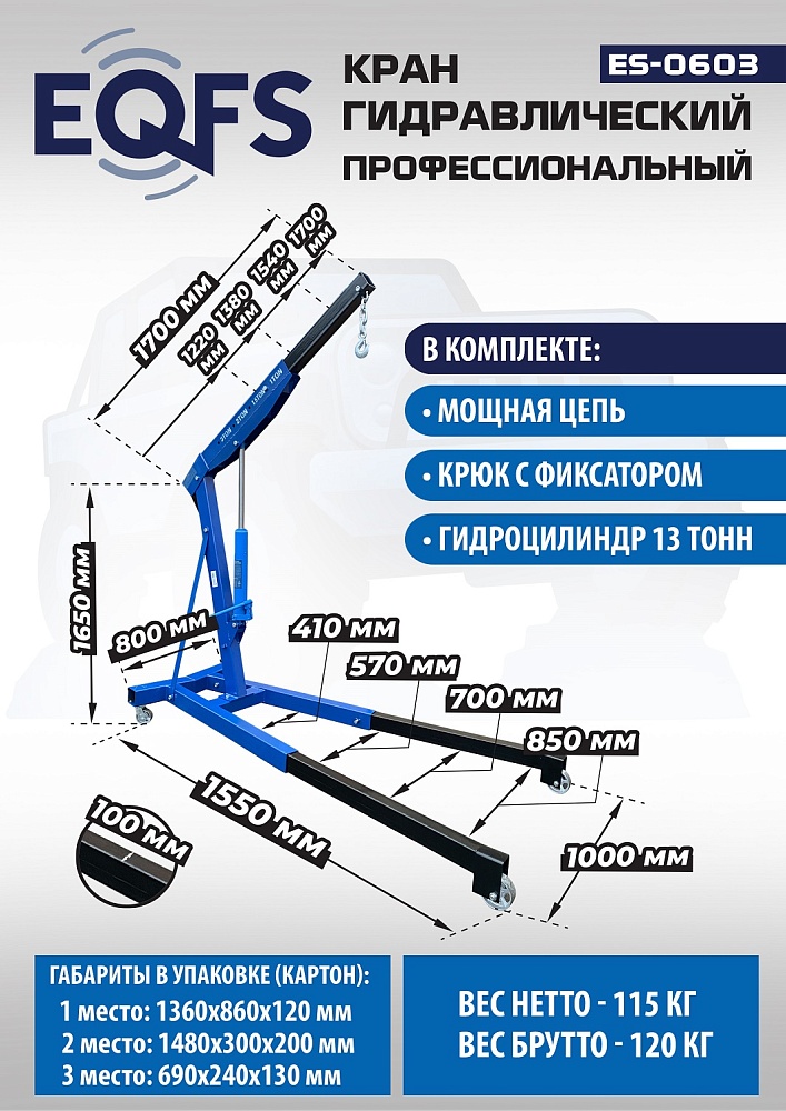 ES-0603 Кран гаражный, 3 т купить в Саратове цена ✅ - Все для СТО
