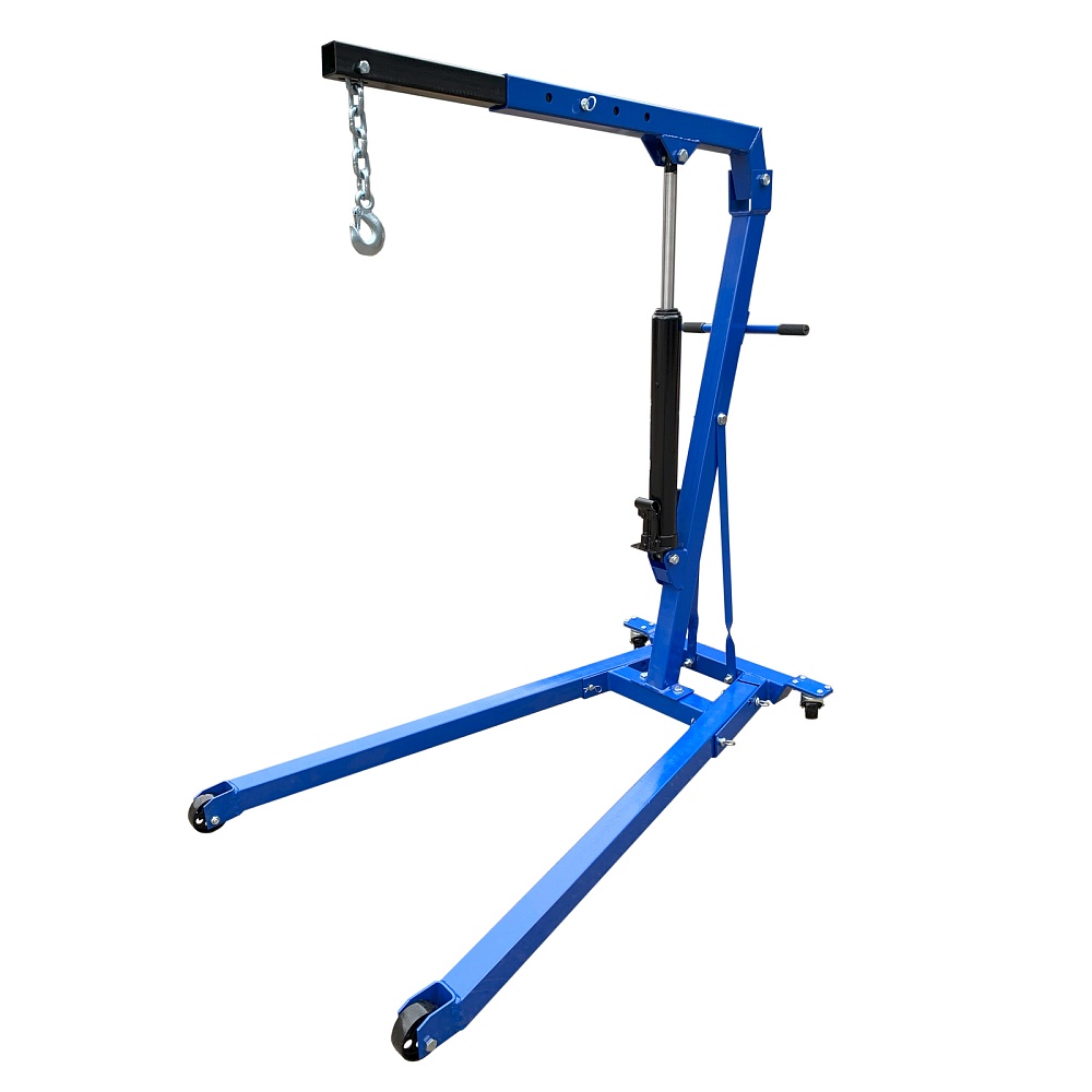 Кран гаражный гидравлический, складной.  Грузоподъемность 2,0 т. Высота подъема 2380мм. Длина стрелы 1500мм. Высота крана 1400мм.