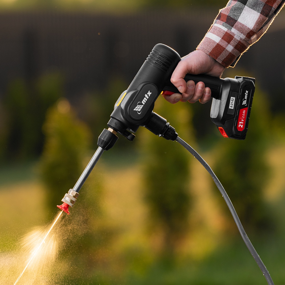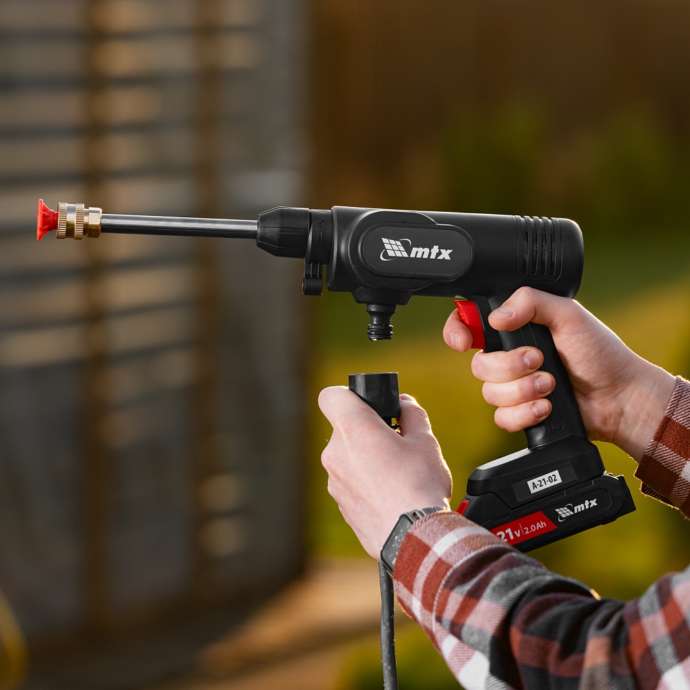 Моечная машина высокого давления аккумуляторная А-21-02, 40 бар, 4 л/мин, Li-ion 21 В, 2 акк.// MTX купить в Саратове цена ✅ - Все для СТО
