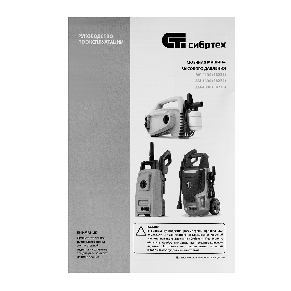 <p>Колесная моечная машина высокого давления Сибртех AM-1800 58226 мощностью 1800 Вт и производительностью 350 л/ч подает струю воды 140 бар. Позволяет быстро очистить садовые дорожки, забор, стены строений, садовый инвентарь, уличную мебель, кузов автомобиля. Машина подключается к водопроводу, а также способна работать в режиме самовсасывания — в этом случае в качестве источника воды можно использовать любую емкость. Устройство будет полезно владельцам дачных участков.</p><h2>Преимущества</h2><ul><li>Высокий ресурс — алюминиевая помпа выдерживает интенсивное использование.</li><li>Экологичность — во время работы машины отсутствуют вредные выхлопы и неприятный запах.</li><li>Термозащита — в случае перегрева двигатель отключается для предотвращения поломки.</li><li>Электробезопасность — токопроводящие элементы имеют двойную изоляцию.</li><li>Удобная регулировка струи — вращая корпус сопла, можно установить оптимальный вид распыления.</li><li>Эффективное очищение — в комплект поставки входит внешний пеногенератор, позволяющий использовать моющие средства.</li><li>Удобная работа в труднодоступных местах — на пистолет можно установить насадку-удлинитель.</li><li>Безопасность — блокировка рычага пистолета предотвращает случайный запуск.</li><li>Защита от засоров — входной штуцер имеет встроенный фильтр, задерживающий посторонние частицы.</li><li>Легкая подготовка к работе — быстросъемный адаптер позволяет подключить входной шланг одним движением.</li><li>Свободное передвижение по рабочей зоне — длина сетевого кабеля и шланга составляет 5 м, что позволяет реже перемещать мойку во время работы.</li><li>Простое обслуживание — в комплект поставки входит игла для прочистки сопла.</li><li>Продуманное хранение и транспортировка — машина снабжена удобной ручкой и колесами, для кабеля и шланга предусмотрены специальные кронштейны.</li></ul>