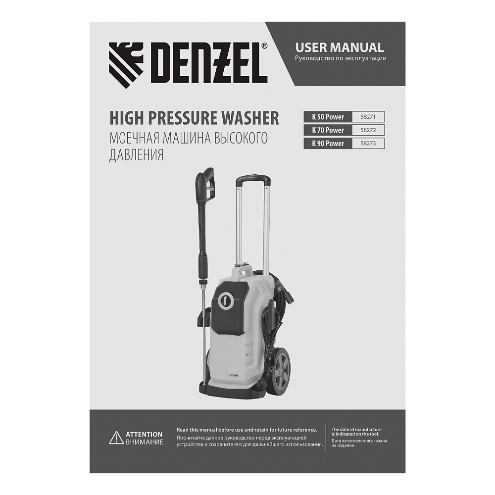 <p>Моечная машина высокого давления Denzel K 70 Power 58272 мощностью 2500 Вт и производительностью 600 л/ч, с асинхронным двигателем, обеспечивает подачу воды под давлением до 180 бар. Позволяет при помощи струи воды отмыть фасад дома, дорожку, тротуар, садовую мебель, технику и инструменты, автомобиль, окна и т.д. Машина оснащена самовсасывающим насосом, поэтому может работать даже при отсутствии доступа к водопроводной сети, забирая воду из открытого источника. Надежный асинхронный двигатель с водяным охлаждением устойчив к нагрузкам и не требует сложного обслуживания. Машина оптимальна для бытового применения.</p><h2>Преимущества</h2><ul><li>Высокий ресурс — профессиональная алюминиевая помпа с водяным охлаждением обеспечивает стабильное давление в течение длительного времени: испытаниями подтверждена возможность непрерывной работы на протяжении 700 часов.</li><li>4 насадки в комплекте — возможно распыление под углом 0, 15, 25 и 40° для наиболее эффективного решения поставленных задач.</li><li>Эффективное очищение — возможно использование моющих средств, для этого предусмотрен специальный бачок с насадкой пеногенератора.</li><li>Защита от засоров — фильтр входного штуцера препятствует попаданию посторонних частиц внутрь машины.</li><li>Быстрая подготовка к работе — быстросъемный адаптер упрощает подключение входного шланга.</li><li>Продуманная конструкция — сменные насадки и бачок для моющего средства крепятся на корпус машины, поэтому он всегда будут под рукой и не потеряются.</li><li>Степень защиты IPX5 — внутренние элементы машины надежно изолированы от попадания влаги.</li><li>Защита от непроизвольного запуска — для включения машины необходимо разблокировать рычаг моечного пистолета.</li><li>Автоматический контроль давления — манометрический выключатель останавливает насос при прекращении подачи воды, перепускной клапан предотвращает превышение допустимого рабочего давления.</li><li>Термозащита — в случае перегрева двигатель отключается для предотвращения поломки.</li><li>Простое обслуживание — игла для прочистки сопла входит в комплект поставки.</li><li>Мобильность — машину удобно перемещать благодаря телескопической рукоятке и большим колесам.</li><li>Свободное перемещение по участку — длина шланга высокого давления составляет 8 м, длина кабеля — 5 м.</li><li>Гарантия 3 года — надежность моечной машины подтверждена производителем.</li></ul>
