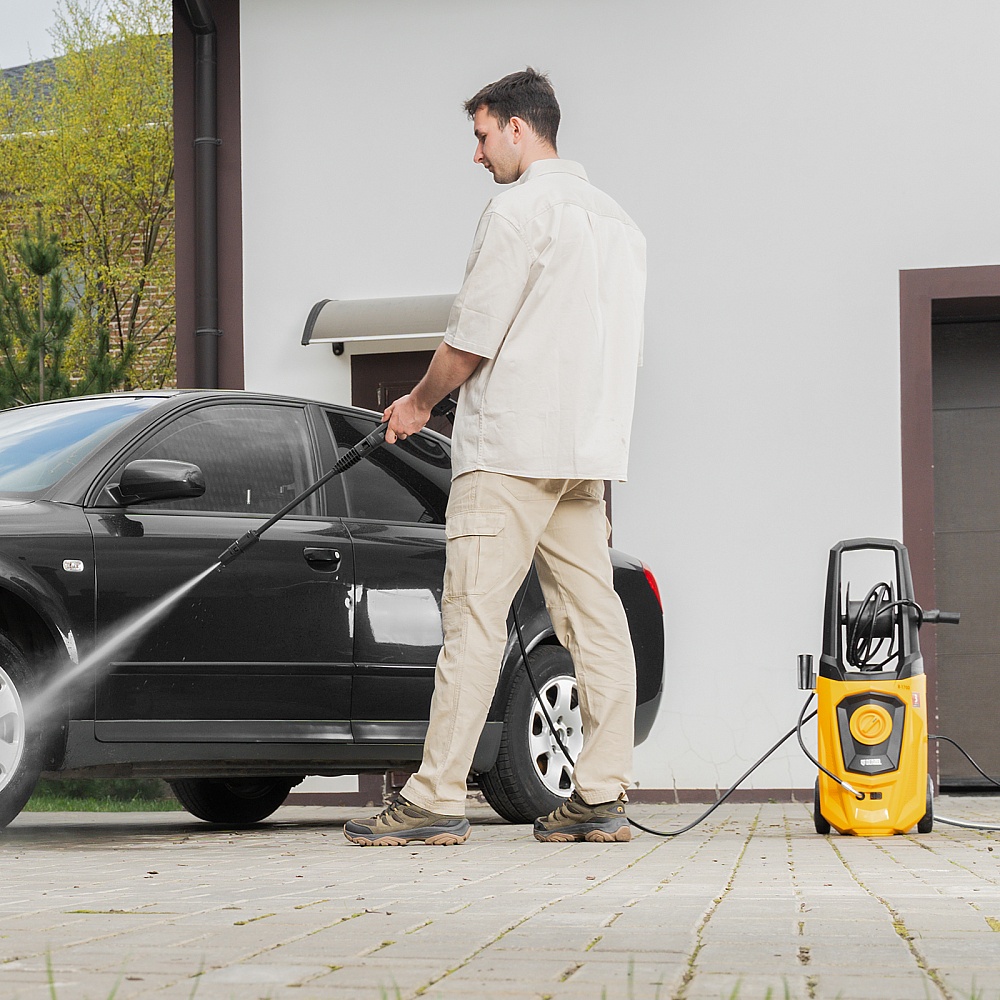 <p>Моечная машина высокого давления Denzel R-170D 58229 с барабаном, мощностью 2000 Вт и производительностью 360 л/ч, подает струю воды под давлением 170 бар и используется для очищения поверхностей. Позволяет быстро удалить загрязнения с кузова автомобиля, мотоцикла, велосипеда, садового и хозяйственного инвентаря, очистить садовую дорожку и террасу, а также стены и окна строений. Источником воды может служить водопроводная линия, а также любая емкость — машина способна работать в режиме самовсасывания. Мойка пригодится владельцам загородных участков.</p><h2>Преимущества</h2><ul><li>Надежность — двигатель с медной обмоткой обеспечивает стабильную работу моечной машины даже при высоких нагрузках.</li><li>Защита от перегрева — термозащита отключает двигатель в случае перегрузки, предохраняя его от поломки.</li><li>Высокий ресурс — алюминиевая помпа рассчитана на интенсивное использование.</li><li>Экологичность — машина работает без вредных выхлопов и неприятных запахов.</li><li>Система фильтрации — вода поступает без посторонних примесей, что увеличивает срок службы машины.</li><li>Класс защиты II — двойная изоляция токопроводящих элементов надежно защищает пользователя от поражения электрическим током.</li><li>Установка оптимального вида распыления — насадка-удлинитель оснащена регулируемым соплом.</li><li>Блокировка рычага пистолета — защита от случайного запуска обеспечивает безопасность пользователя.</li><li>Комфортная работа в труднодоступных местах — насадка-удлинитель позволяет очистить самые удаленные уголки.</li><li>Эффективная работа — можно использовать моющее средство, для которого предусмотрен встроенный бачок.</li><li>Простое подключение — быстросъемный адаптер позволяет легко присоединить входной шланг.</li><li>Длина шланга и кабеля 5 м — не нужно часто перемещать машину, можно работать на удалении от розетки.</li><li>Несложный уход — в комплект поставки входит игла для прочистки сопла.</li><li>Удобная эксплуатация — катушка позволяет вытягивать шланг на нужную длину.</li><li>Мобильность — мойка оснащена колесами и ручкой для удобного перемещения. </li><li>Гарантия 3 года — высокое качество машины подтверждена производителем.</li></ul>