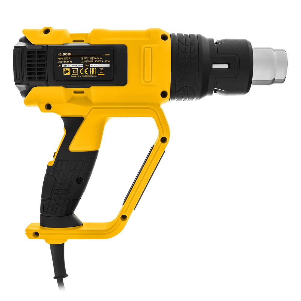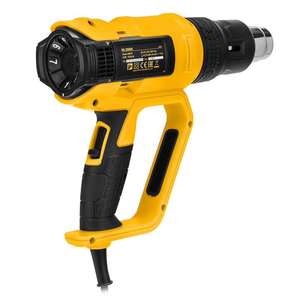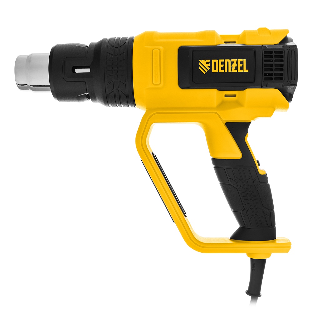 <p>Фен технический Denzel HG-2000M 28005 мощностью 2000 Вт, с 3 режимами работы, подходит для снятия лака и краски с различных поверхностей, размораживания и пайки труб, создания изгиба в пластиковых деталях, генерации точечного теплового потока для нагрева небольших участков и др. Справиться с этими задачами помогает треугольный скребок и 4 насадки: плоская, полукруглая, отражающая и редукционная.,Мощность фена 2 кВт обеспечивает стабильную производительность на уровне 250/500 л/мин, в зависимости от выбранного режима. Температура выходящего потока составляет 50/50-450/50-600 ℃.</p><h2>Преимущества</h2><ul><li>3 режима работы — низкая производительность с выбором температуры, высокая производительность с выбором температуры и режим продувки, позволяющий охладить фен и исключить тепловой удар после отключения.</li><li>Многозадачность — плавная аналоговая настройка температуры обеспечивает выполнение целого спектра задач — от деликатного просушивания до сварки и пайки.</li><li>Двухуровневая защита — фен отключается при риске перегрева или перегрузки, это позволяет избежать поломок и сохранить рабочий ресурс инструмента.</li><li>Качественная сборка — переключатель режимов безупречно справляется со своими задачами даже спустя длительное время.</li><li>Продуманная конструкция — фен можно зафиксировать в вертикальном положении соплом вверх, это помогает избежать отключения при перерыве в работе.</li><li>Безопасный захват — D-образная рукоятка исключает случайное соприкосновение с разогретой поверхностью.</li><li>Кабель питания длиной 3 м с резиновой изоляцией — можно расширить рабочую зону без помощи удлинителя, работать при температуре от 0 ℃ и без риска поломки подвергать фен кратковременному воздействию высоких температур.</li><li>Небольшой вес 940 г — инструментом удобно работать даже длительное время.</li><li>Гарантия 3 года — высокое качество фена подтверждено производителем.</li></ul>