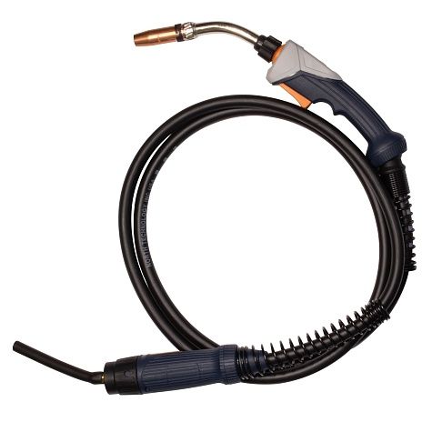 Горелка для аппарата (MIG/MAG) полуавтоматической сварки с поворотным гусаком. В горелку установлен красный тефлоновый канал для работы с проволокой 1.0-1.2мм. В комплекте 2 токосъёмных наконечника (AL): 1.0мм и 1.2мм.