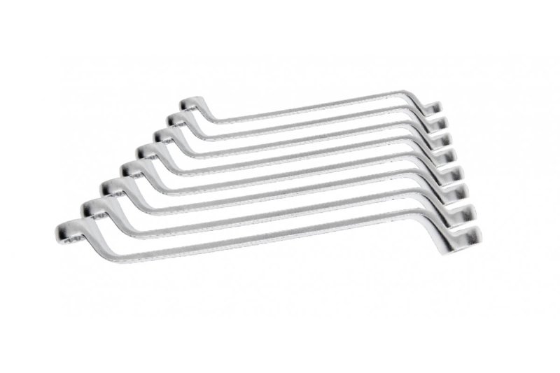 Набор изогнутых накидных ключей. Ключи изготовлены из высококачественной легированной стали CrV, устойчивые к деформации.