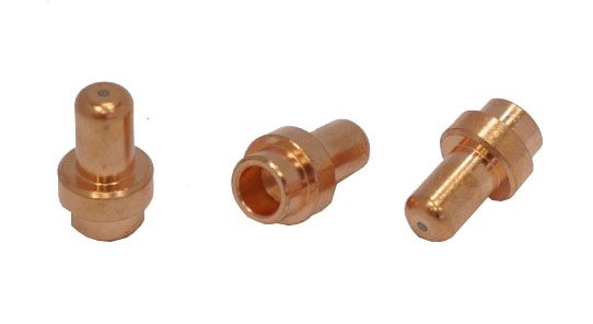 Катод - расходная часть плазмотрона. Оснастку изготавливают из сплава меди и латуни. Данный сплав обладает отличными показателями токопроводимости, высокими прочностными характеристиками, а так же способствует лучшему теплоотводу. Чаще всего для работы в нейтральных плазмообразующих средах в качестве сердечника электрода используют вольфрам, в окислительных средах применяют катоды из циркония или гафния.