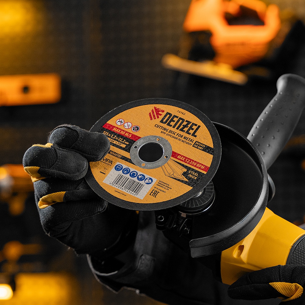 <p>Отрезной круг по металлу Denzel WA60TBF 73762 размером 125 х 1,2 х 22,2 мм рассчитан на интенсивную работу с УШМ. Подходит для резки углеродистой и нержавеющей легированной стали. Круг можно использовать не только в быту, но и для решения профессиональных задач.</p><h2>Преимущества</h2><ul><li>Эффективность — абразив из белого электрокорунда со специальными добавками быстро режет сталь, в т.ч. нержавеющую, и не перегревается, в отличие от оксида алюминия.</li><li>Аккуратная работа — благодаря толщине 1,2 мм и средней по плотности структуре круг обеспечивает ровный и чистый рез.</li><li>Надежность — оптимально подобранная теплостойкая бакелитовая связка с упрочняющими элементами крепко удерживает абразив.</li><li>Безопасная работа — усиленная стеклосетка увеличивает прочность круга на разрыв, предотвращая его разрушение при высоких нагрузках.</li><li>Высокое качество — круг прошел строгий технологический контроль на каждом этапе производства.</li></ul>