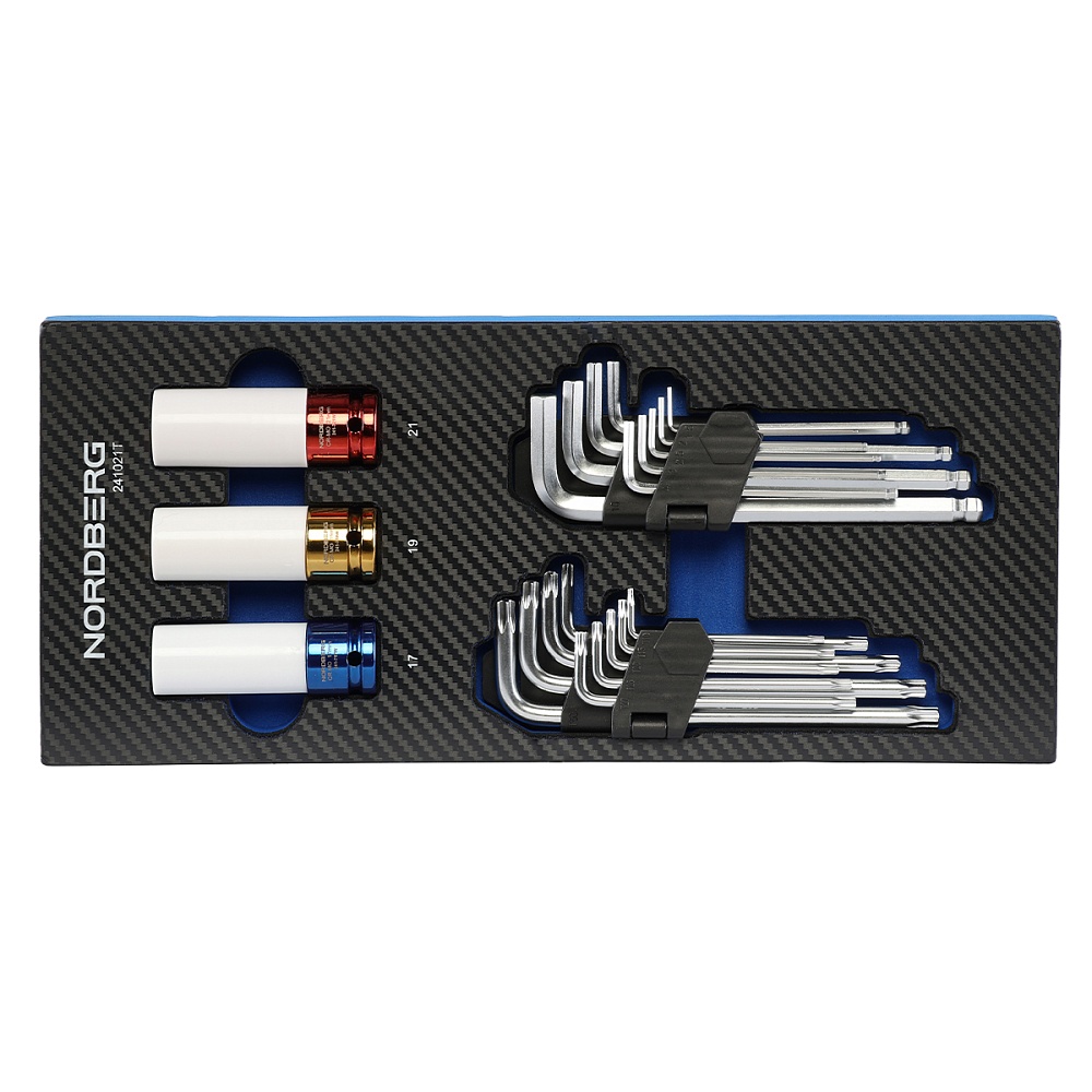 Набор шестигранных ключей и ударных головок 21 предмет в ложементе для тележки NORDBERG 241021T купить в Саратове цена ✅ - Все для СТО