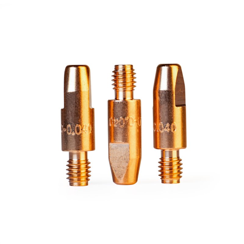 Наконечник – расходная часть MIG/MAG горелки, которая обеспечивает токосъём в процессе сварки, поэтому наконечники, так же называют контактными. Кроме того, через наконечник в процессе сварки подаётся проволока. Для оптимальной работы и идеального контакта необходимо, чтобы диаметр отверстия наконечника и сечение проволоки – совпадали.