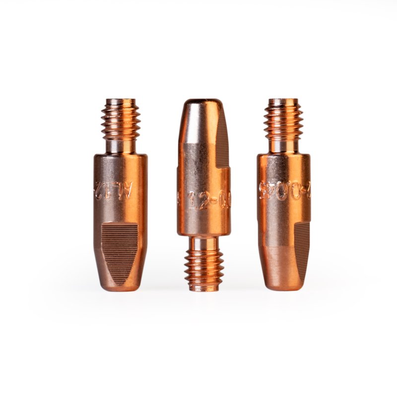 Наконечник – расходная часть MIG/MAG горелки, которая обеспечивает токосъём в процессе сварки, поэтому наконечники, так же называют контактными. Кроме того, через наконечник в процессе сварки подаётся проволока. Для оптимальной работы и идеального контакта необходимо, чтобы диаметр отверстия наконечника и сечение проволоки – совпадали.