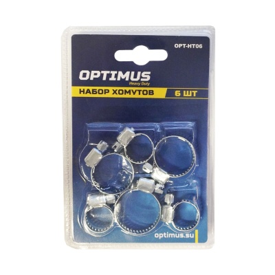 OPT-HT06 Хомуты червячные набор 6шт. 10-27 OPTIMUS купить в Саратове цена ✅ - Все для СТО