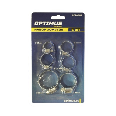 OPT-HT08 Хомуты червячные набор 6шт. 10-38 OPTIMUS купить в Саратове цена ✅ - Все для СТО