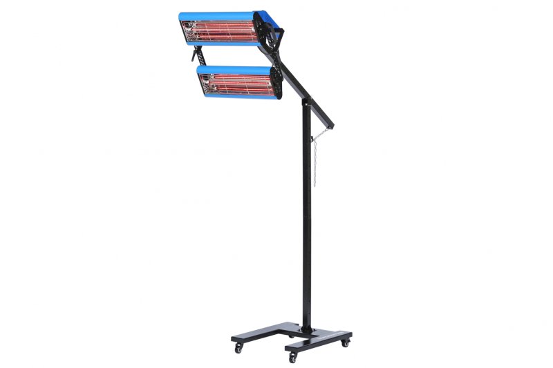 Два нагревательных элемента общей мощностью 2,6 кВт, находящиеся в двух излучателях, обеспечивают направленный нагрев окрашенной или обработанной другими материалами поверхности за короткий промежуток времени