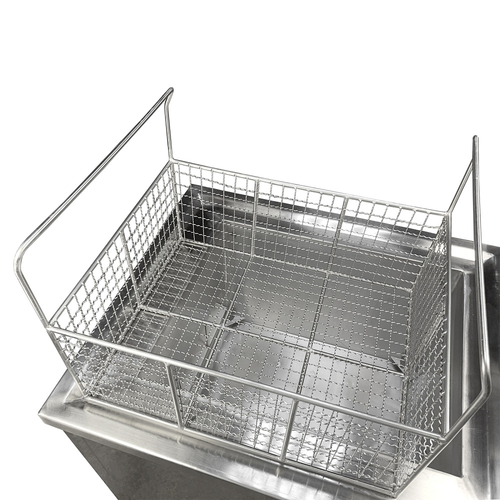 Специальная корзина позволяет избегать контакта кожи с реагентом. Дренажный клапан дает возможность без усилий слить отработанную жидкость без необходимости перемещать ультразвуковую мойку по рабочему пространству.