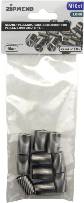 Вставка резьбовая для восстановления резьбы LONG M10 х 1.0, 10 штук, ZIPMEND, ZS-G021010-10L.