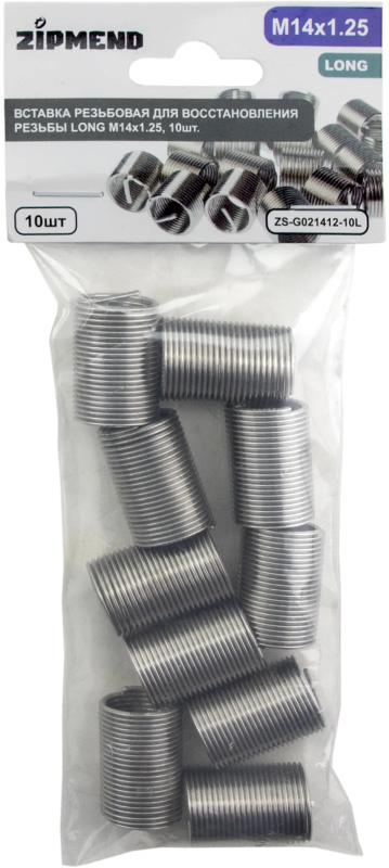 Вставка резьбовая для восстановления резьбы LONG M14 х 1.25, 10 штук, ZIPMEND, ZS-G021412-10L.