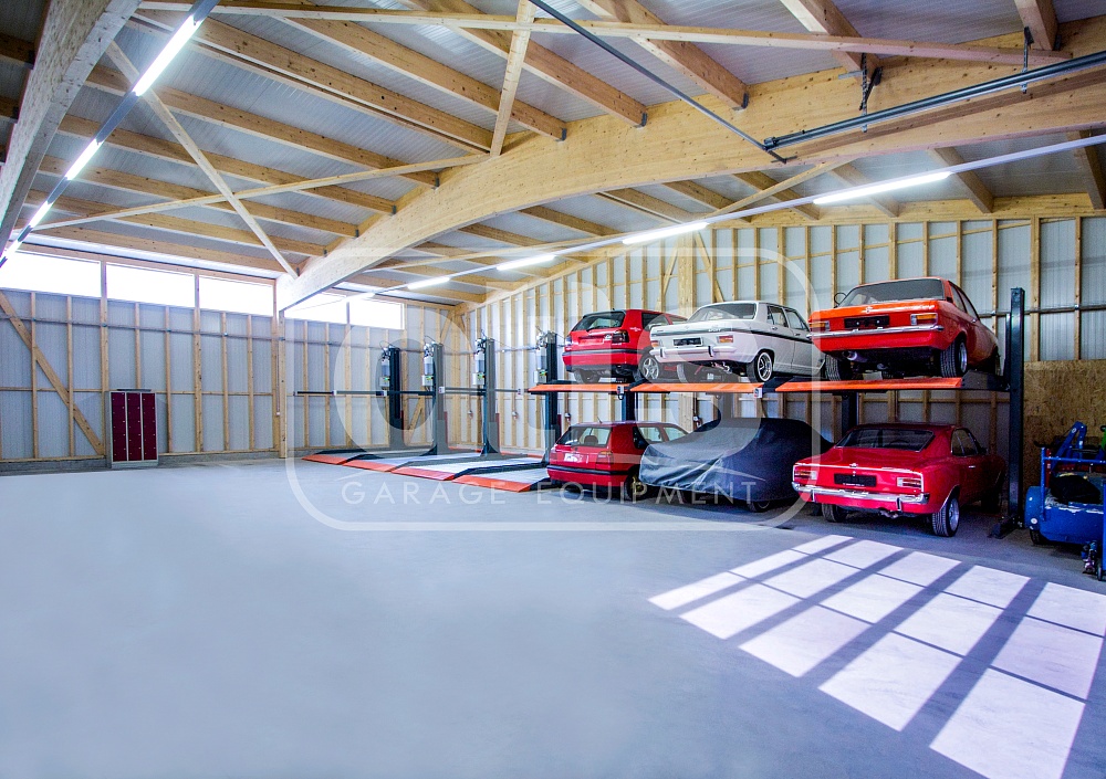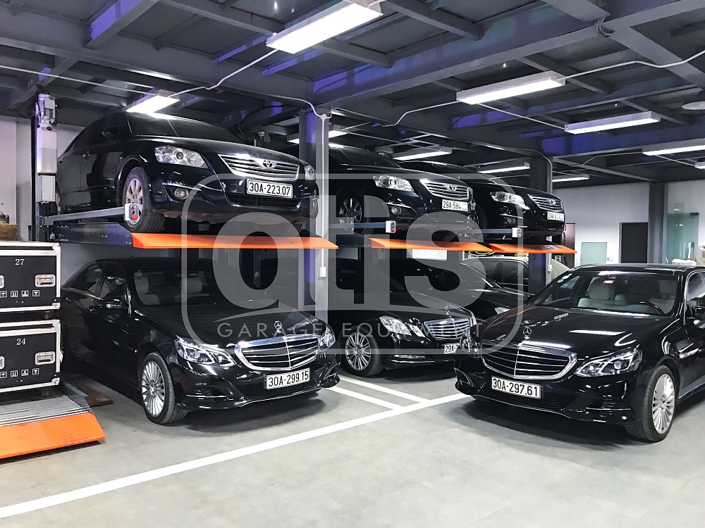 Подъемник выдерживает до 2.7 тонн на машиноместо и оснащён системой двойной защиты от падения.