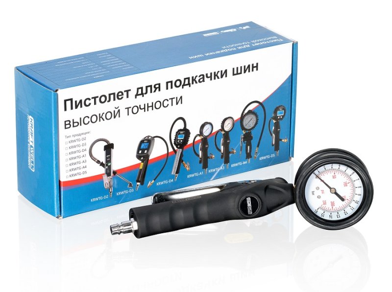 KRWTG-A1 KraftWell Пистолет для подкачки шин. В цветной коробке. Аналоговый манометр. Пластиковая рукоятка, металлический курок. Давление до 16 бар.
