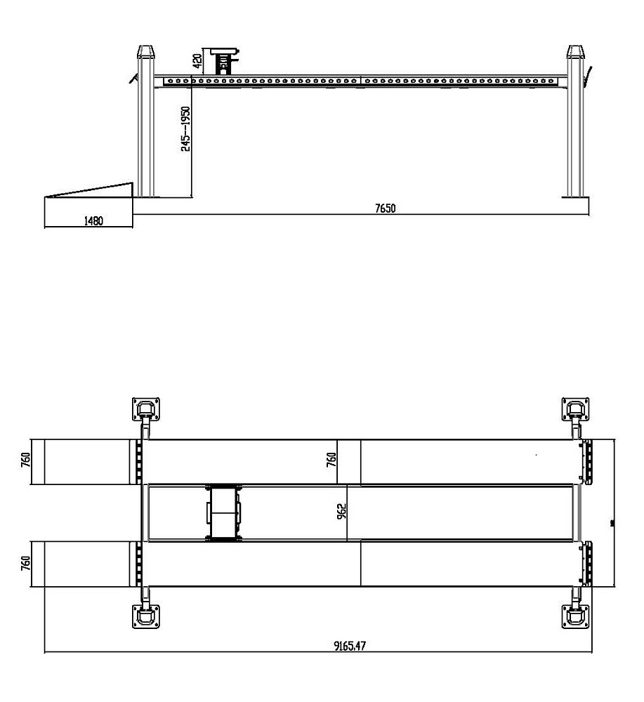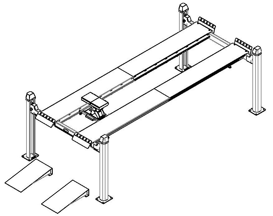 Удлиненный электрогидравлический четырехстоечный подъёмник грузоподъемностью 6,5 т для обслуживания легкового и коммерческого транспорта Оснащение подъемника дает возможность производить регулировку развал/схождения, ремонт тормозной и рулевой систем, и другие работы