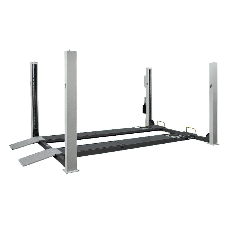 Удлиненный электрогидравлический четырехстоечный подъёмник грузоподъемностью 6,5 т для обслуживания легкового и коммерческого транспорта Оснащение подъемника дает возможность производить регулировку развал/схождения, ремонт тормозной и рулевой систем, и другие работы