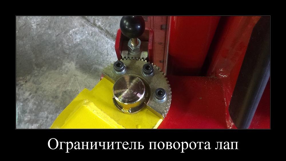 Ограничитель поворота лап, автоматически отключающийся при опускании кареток на пол.