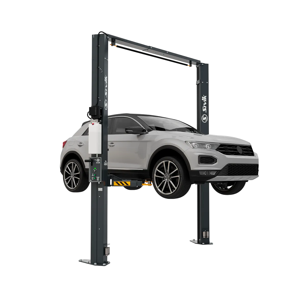 Электрогидравлический двухстоечный подъемник для легковых автомобилей, внедорожников и легкого коммерческого транспорта общей массой до 5т Классическая симметричная конструкция с удлиненными трехсоставными подхватами прекрасно подходит для работы с длиннобазными автомобилями Самая жесткая и устойчивая конструкция Нет порога между колоннами. Свободный заезд автомобиля по ровному полу. Нет ограничений при работе со вспомогательным мобильным оборудованием под автомобилем: тележки, трансмиссионные стойки и пр. Система синхронизации, расположенная сверху, не подвержена износу из-за контакта с влагой и грязью
